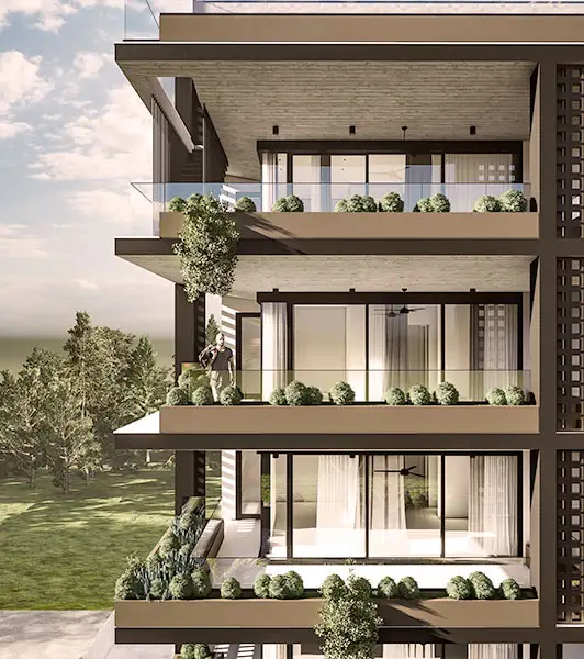 Riverbank Suites is a modern real-estate development project that exemplifies innovative architecture and sustainable design. This boutique residential building features a sleek facade with lush greenery integrated into its terraces, offering a harmonious blend of urban living and nature.